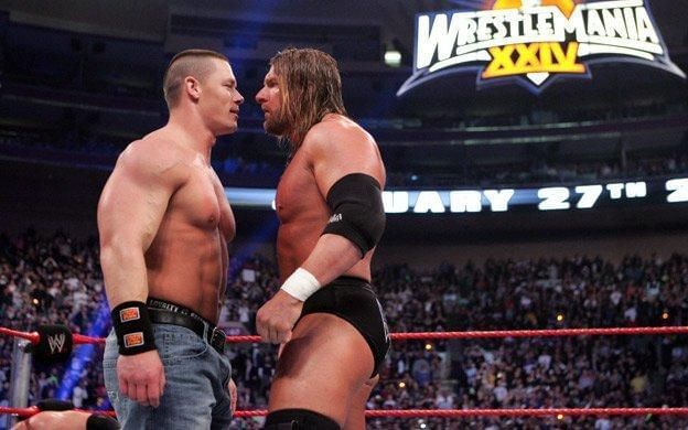 Cena would eliminate Triple H to win the Royal Rumble but would lose his Wrestlemania title shot at No Way Out. Cena would win, but via Disqualification meaning that he didn't win the title. The two had a rematch at Wrestlemania that also included Triple H at Wrestlemania with Orton retaining his title.
