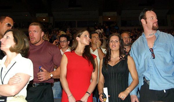 After several interactions on TV between the two, Hunter developed feelings and plotted to ask her out. Scared about what the rest of the locker room would say, Triple H sought advice from the locker room leader, The Undertaker.