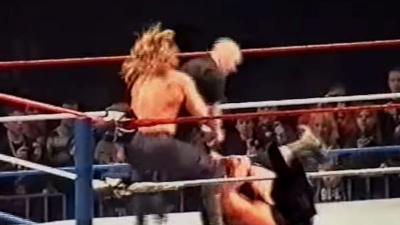 Unfortunately, RVD’s knee hit Hunter’s throat and crushed his larynx. Despite struggling to breathe, Triple H continued to wrestle for another 30 minutes, making him a true tough guy, not just a pretend one.