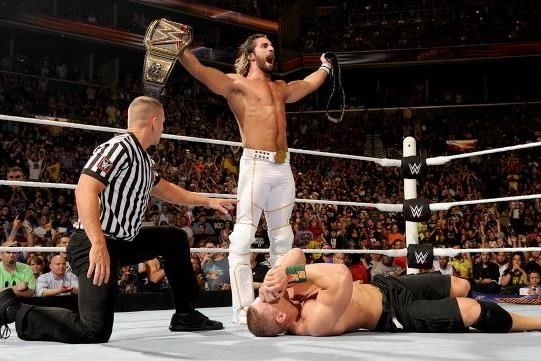 At Summerslam 2015, Seth Rollins squared off against John Cena in a title vs. title match, and he came out victorious to take home both titles. One thing that’s certain in a big match against Cena, though, is that one finisher won’t be enough.