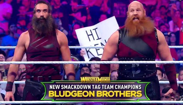 The Usos had put their SmackDown tag team championships on the line in a triple threat match against the New Day and the Bludgeon Brothers. The Bludgeon Brothers had received a tremendous push ahead of WrestleMania and they made full use of their momentum to win the titles at the Show of Shows.