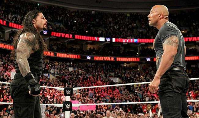 After the match, The Samoans attack The Rock. But Roman tries to break them up. They argue in the ring leaving The Rock to recuperate. Reigns sends The Samoans out of the ring and turns to check on The Rock. The Rock delivers a Rock Bottom to Reigns and escapes the others.