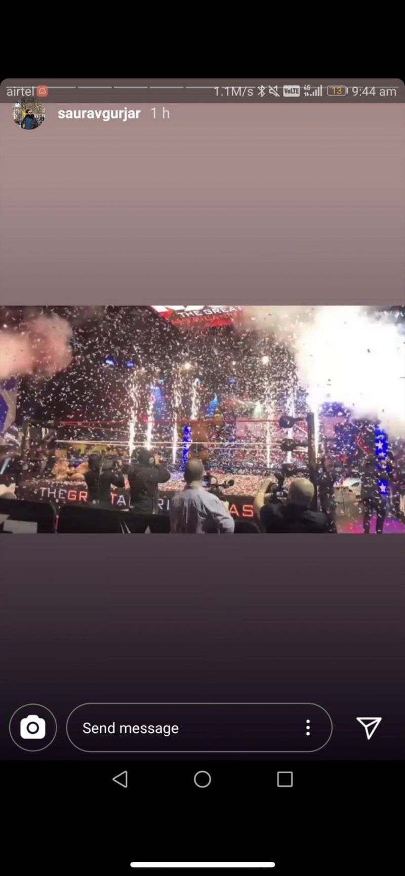 In screenshots sent to Sportskeeda, it appears as though Gurjar spoiled the outcome of the match, as the post on his IG Story shows Keith Lee standing tall in the ring while pyro and confetti explode around him, and he holds both belts aloft.