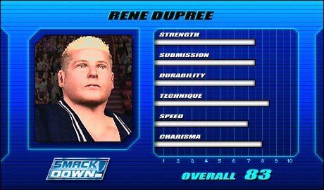 With a solid 83 rating, Dupree was a decent all-rounder in the game, though with never having a face run in the company, probably wasn't many fans first picks when they got the game in November 2004.