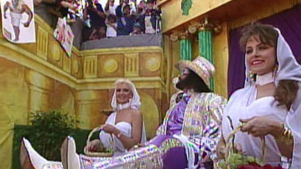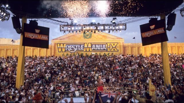 That being said, the set-up for WrestleMania IX was incredibly cool. It was the first time the show was held outside, and the backdrop of the Las Vegas strip made for some great visuals. WWE set this one up as the world's largest toga party, and signs were printed to look like Roman columns at the the top of the bleachers, the rig above the ring, as well as on the entrance itself, making for a unique set at a time when WrestleMania's sets were usually pretty stagnant.