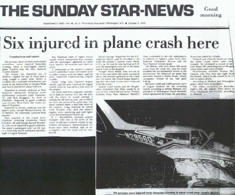 Three others were on the plane including promoter David Crockett. Because of the damage caused by the plane crash, doctors allegedly informed Flair that he would never wrestle again.