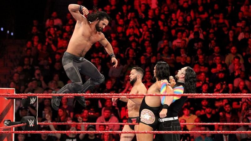 Finn Balor, Seth Rollins and Jeff Hardy vs The Miz & The Miztourage