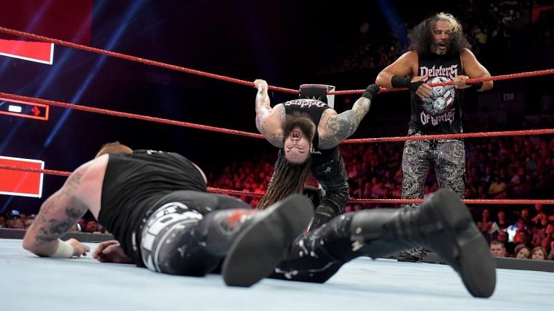 Strowman was sent into the ring post and Balor tagged himself in. Balor hit a double stomp and KO broke the pin. Outside, Strowman charged at KO and sent both Owens and himself through the barricades. Balor hit a DDT and a dropkick on Corbin but was hit with an End of Days before Corbin got the three count.