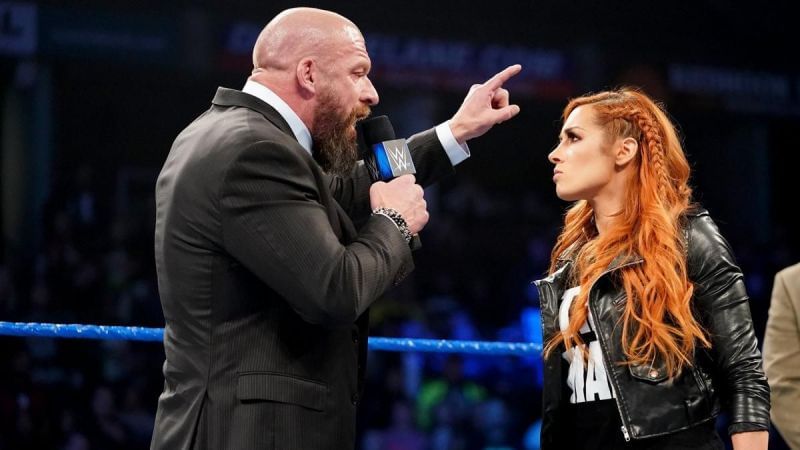 On Monday Night we watched Stephanie McMahon suspend Becky Lynch which resulted in an aggressive reaction from The Man, and then again on SmackDown last night Triple H talked down Lynch, which resulted in The Man slapping him.
