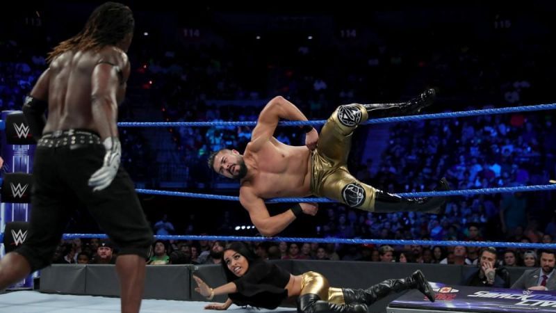 R-Truth evaded Almas' offence and started showboating a bit. He hit a splash on Almas and went for the scissor kick but missed. Almas sat in the mid-ropes with the Tranquilo pose and Zelina joined him. Carmella hilariously pulled her away and slammed her on the floor.