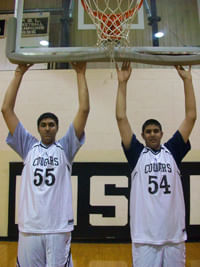 That said, much kudos to the 6 feet 3 and 5 feet 11 Punjabi parents who went to Canada and had two sons, who at the ages of 16 and 14, are 7’4 and 7’2, respectfully. And apparently, they canball! The Bhullar brothers from Toronto were covered by Stephen Brodzinski on SLAM Online a couple of months ago. I read about Sim and Tanveer Bhullar of the Kiski School in this article by Chris Harlan (Pittsburgh Tribune-Review today. Here is an excerpt: