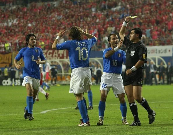The referee accused of ending Italy’s 2002 World Cup dream has a toilet block named after him. Ecuadorian Byron Moreno’s name is on public loos at Sicily’s Santa Teresa Riva resort after he disallowed a golden goal, turned down a penalty claim and sent off Francesco Totti. Italy lost 2-1 to South Korea.