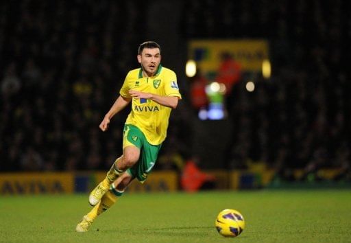 Norwich City’s striker Robert Snodgrass runs with the ball at Carrow Road in Norwich, England on January 30, 2013. Norwich City remain a relegation risk after a 2-2 draw at home to Swansea City on Saturday left Chris Hughton’s side five points above the Premier League’s bottom three.