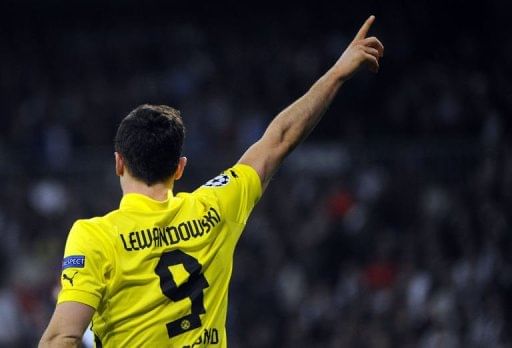 Dortmund’s striker Robert Lewandowski during their UEFA Champions League semi-final second leg football match against Real Madrid at the Santiago Bernabeu stadium in Madrid on April 30, 2013. German side Borussia Dortmund reached their first Champions League final since 1997, winning 4-3 on aggregate despite losing 2-0 to Real Madrid in the second leg of their semi-final clash on Tuesday.