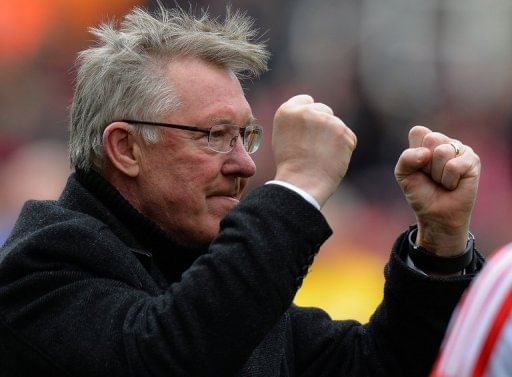 Manchester United manager Alex Ferguson celebrates after an English Premier League match against Stoke City on April 14, 2013. Ferguson could be about to sensationally retire as manager of English Premier League giants Manchester United, according to British media reports