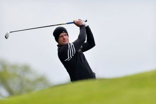 English golfer Luke Donald plays his approach shot to the 1st green during the second round of the PGA Championship at Wentworth Golf Club in Surrey, England, on May 24, 2013. Donald crashed out of the European PGA Championship here at Wentworth.