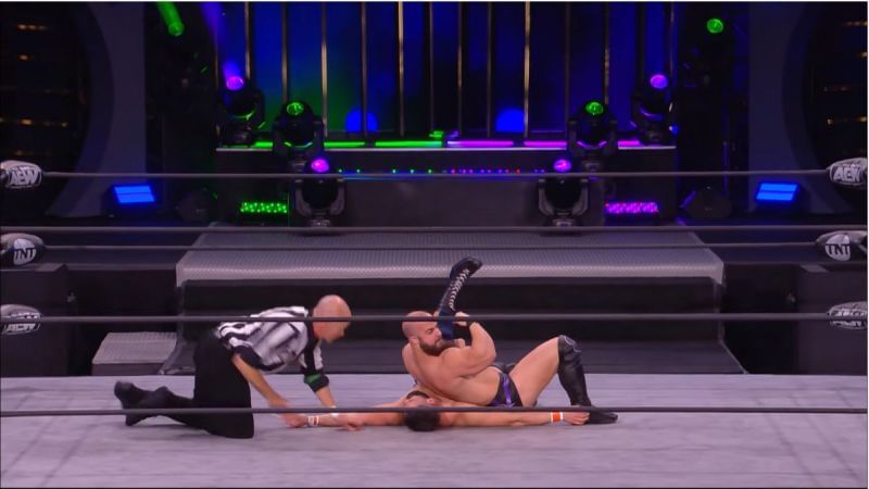 Silver got the tag, and the energetic Dark Order member took James down with a strike. VSK kicked Silver's back when the latter hit the ropes, allowing James to deliver the neckbreaker & a running knee strike.
