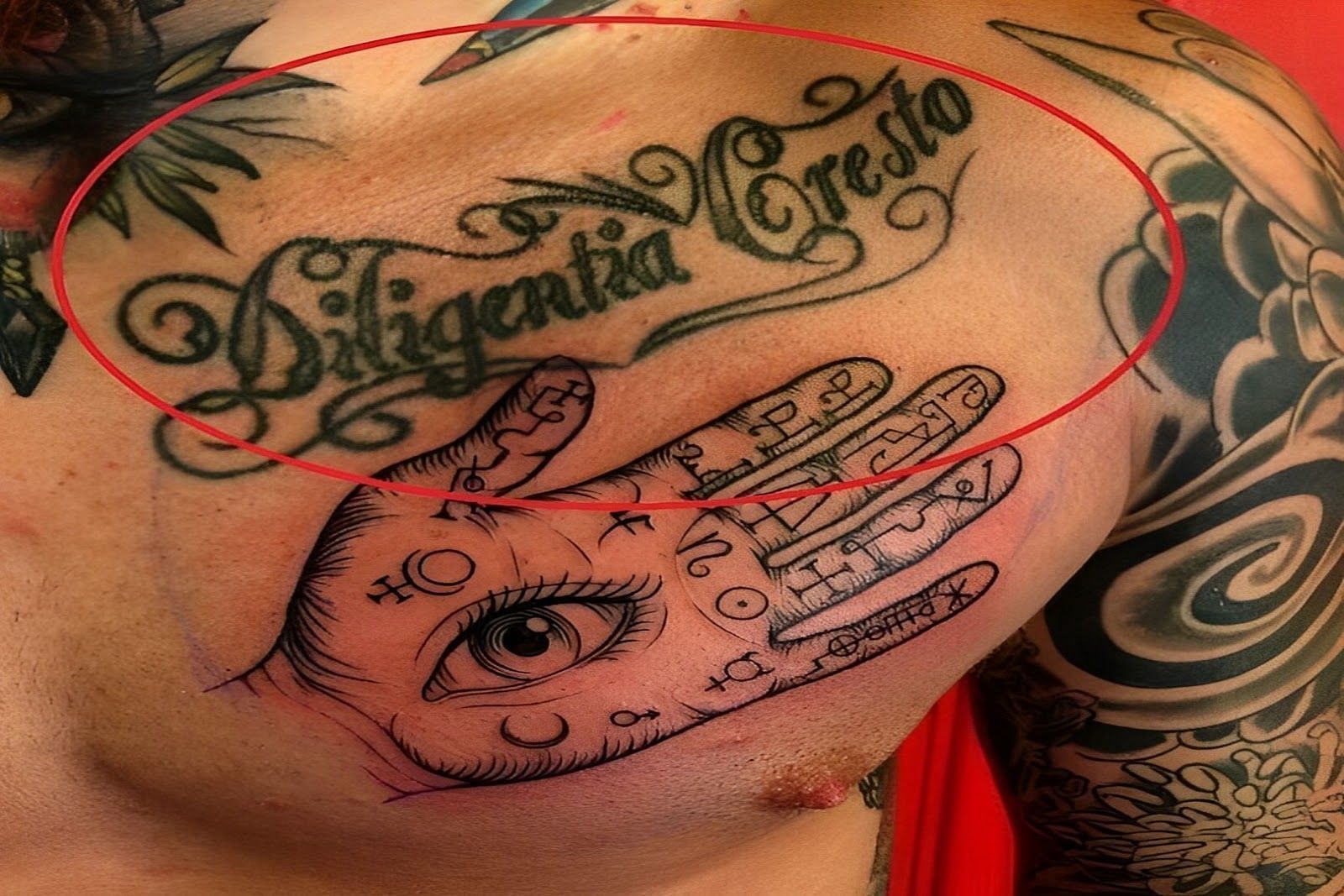 Malakai has inked an intriguing tattoo on his left chest, which he refers to as the "angelic palm reader." He got this piece in the summer of 2015. The tattoo features a hand with a prominent eye in its palm, adorned with various astrological symbols that extend onto the fingers.