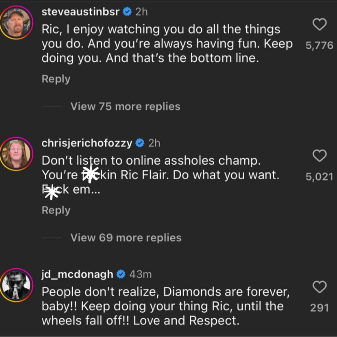 Hall of Famer Ric Flair has had words of encouragement from former WWE names after he took to social media to address all the negativity he has received from the AEW fan base.