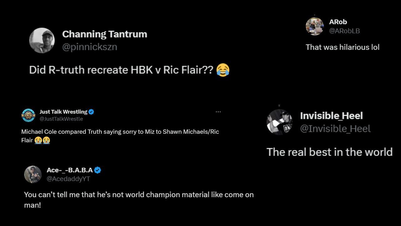 During his and The Miz’s tag team match against The Judgment Day, R-Truth recreated the iconic segment between Shawn Michaels and Ric Flair from WrestleMania 24.