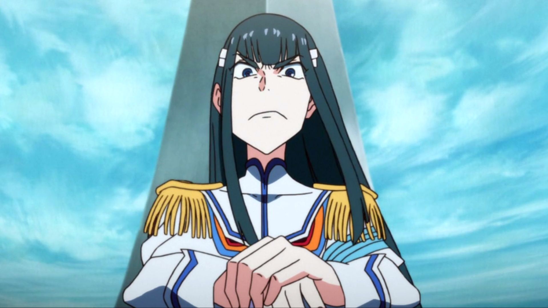 Satsuki Kiryuin from Kill la Kill exhibits an absolute authority and presence, being an iron-fisted student council president of the Honnouji Academy, similar to Takamine, who is also a student council president with a regal presence and unmatched confidence.