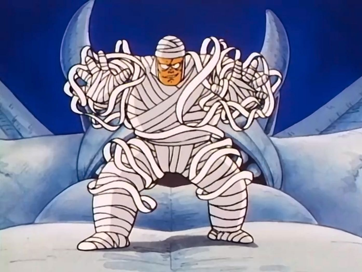 Bandages the Mummy is one of Fortuneteller Baba’s fighters, and while he does give Goku trouble, he’s quickly defeated once the latter adapts to his fighting style.