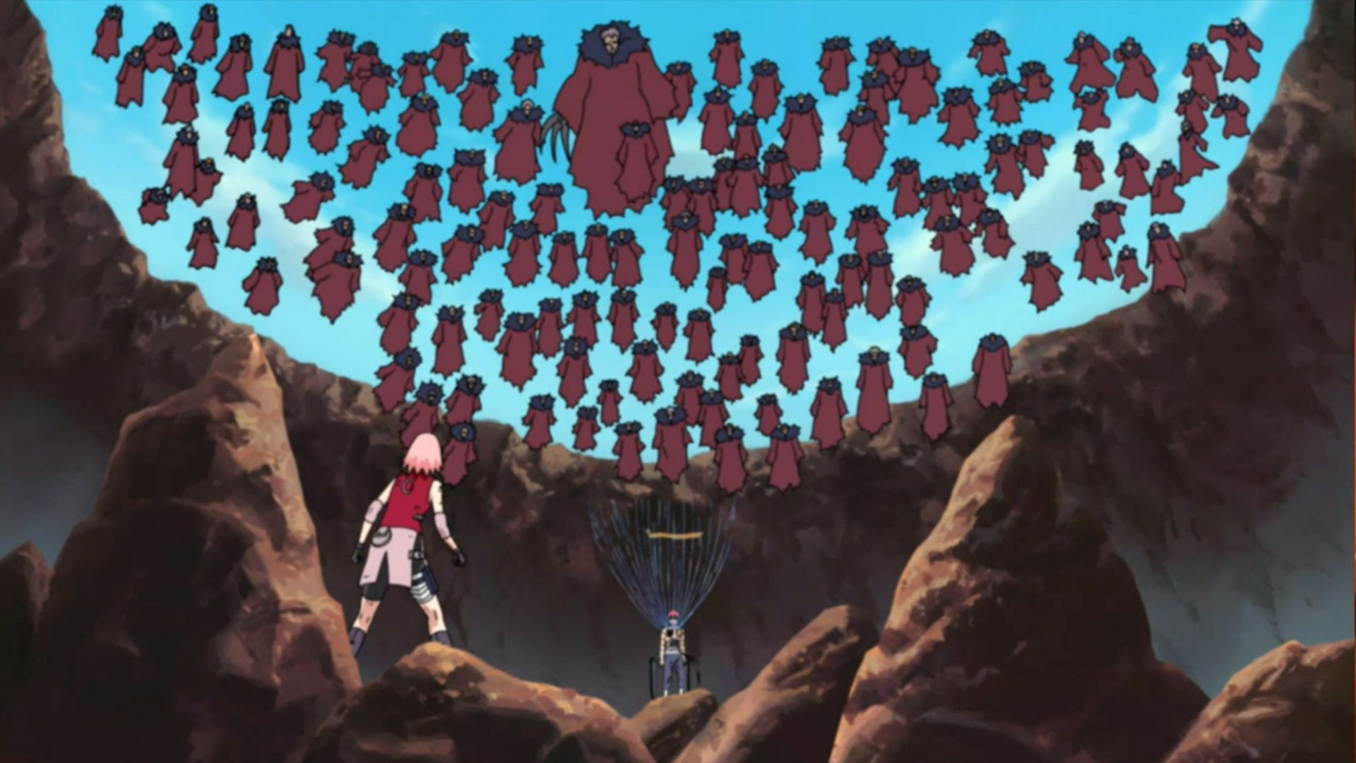 However, to counter her grandmother’s technique, Sasori released a hundred puppets proclaiming he’s not falling behind either. In conjunction with Chiyo’s experience, Sakura's strength helped end Sasori.
