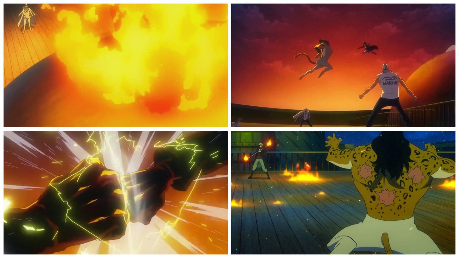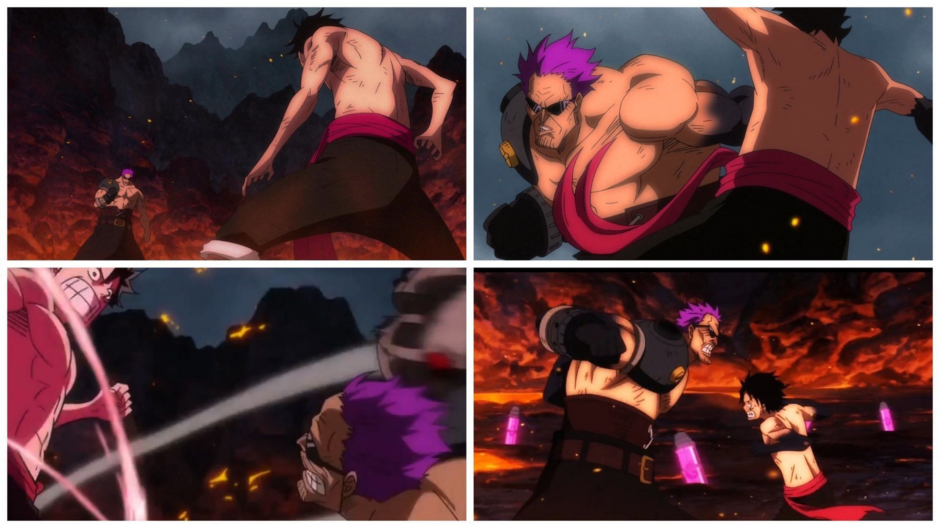 Z fights a furious second battle with Luffy after easily defeating him in their first encounter. This time, the old former Admiral and the captain of the Straw Hats face off on the volcanic island of Piriodo. The battle escalates quickly, with Luffy and Z exchanging fierce blows. As the battle rages on, the energy of both combatants begins to dwindle.