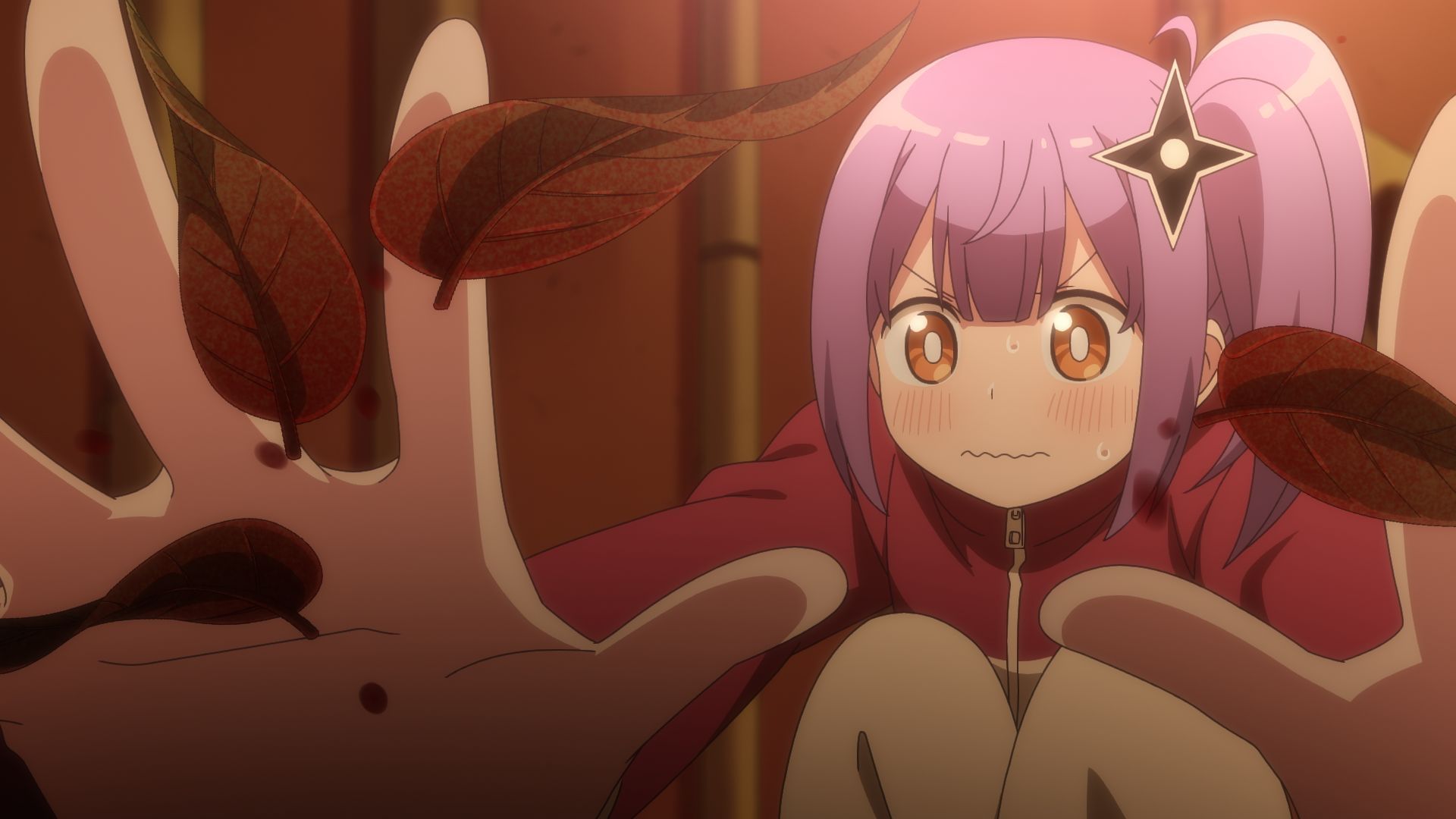 Her training was interrupted by Meiden, another ninja pursuer, taking Satoko hostage. She was quickly dealt with, as usual. But later that day, Marin's entire building turned to leaves, indicating a delayed effect of Satoko ninjutsu. The episode ended with another afterlife segment.