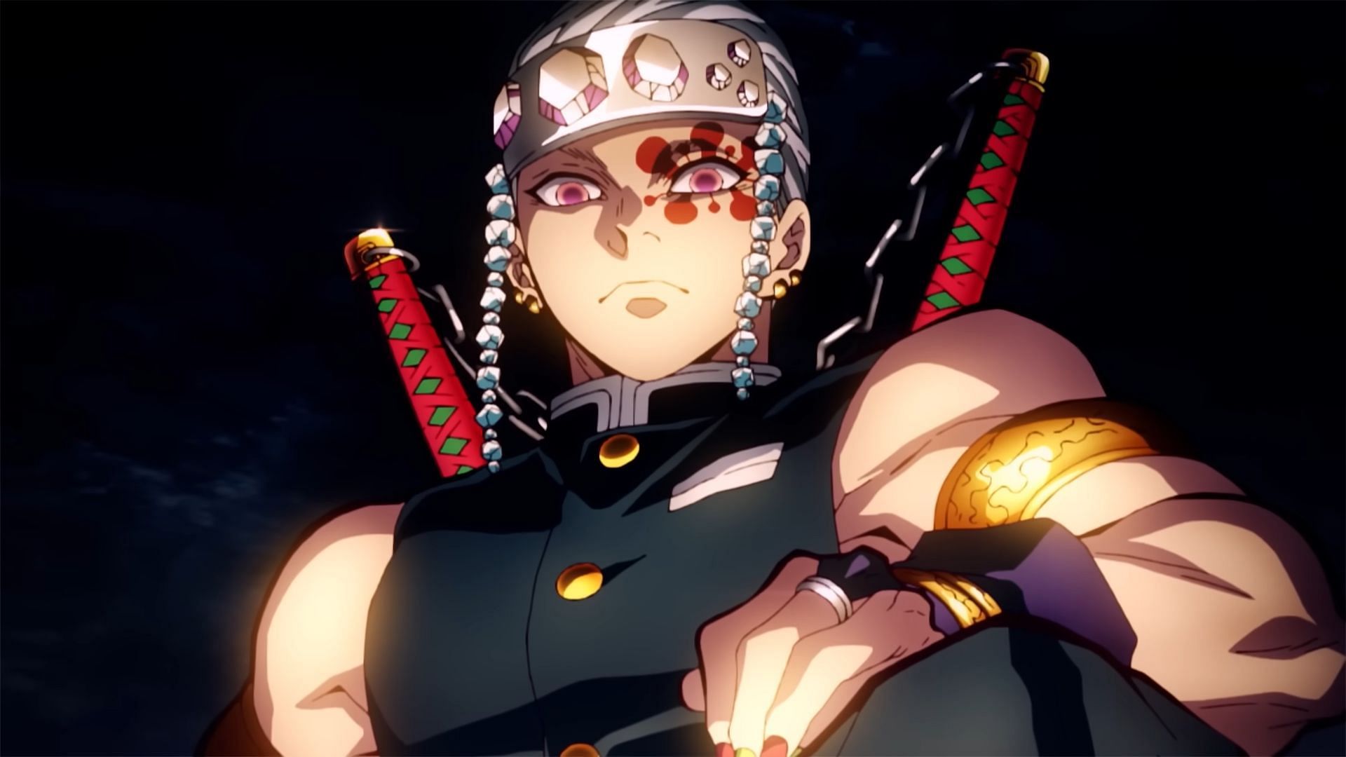 Tengen is the Sound Hashira of Demon Slayer. He is often seen boasting about his flamboyant personality and holds immense distaste for demons. Tengen's only major fight throughout the series was against Daki and Gyutaro in the Entertainment District arc.