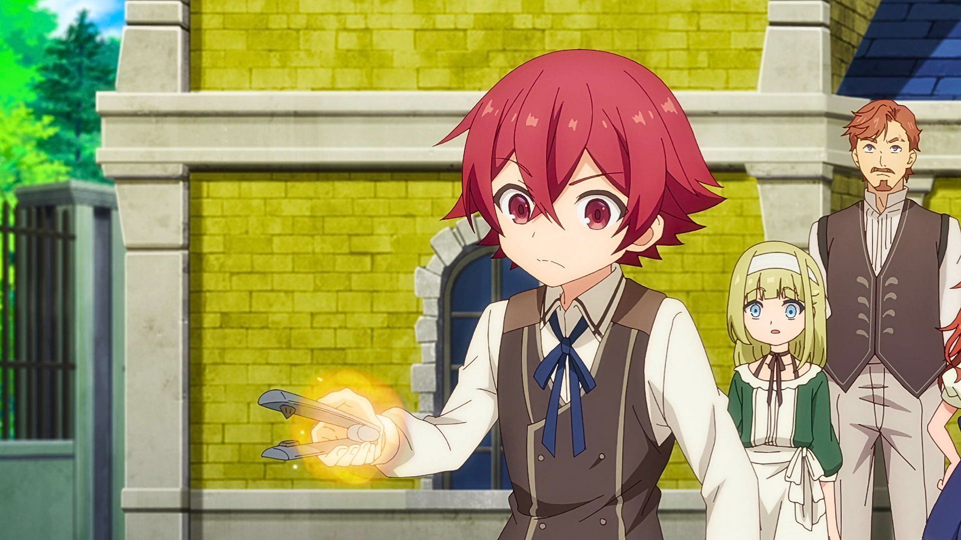 This 2025 winter anime started this episode by having Shion train his magic with his sister Marie and father Gawain watching the action unfold. The protagonist tries to find a way to manipulate fire but only creates blue flames, and his hand almost burns, although he is slowly learning to handle the energy he is creating with his magic, leading him to come up with new variables.