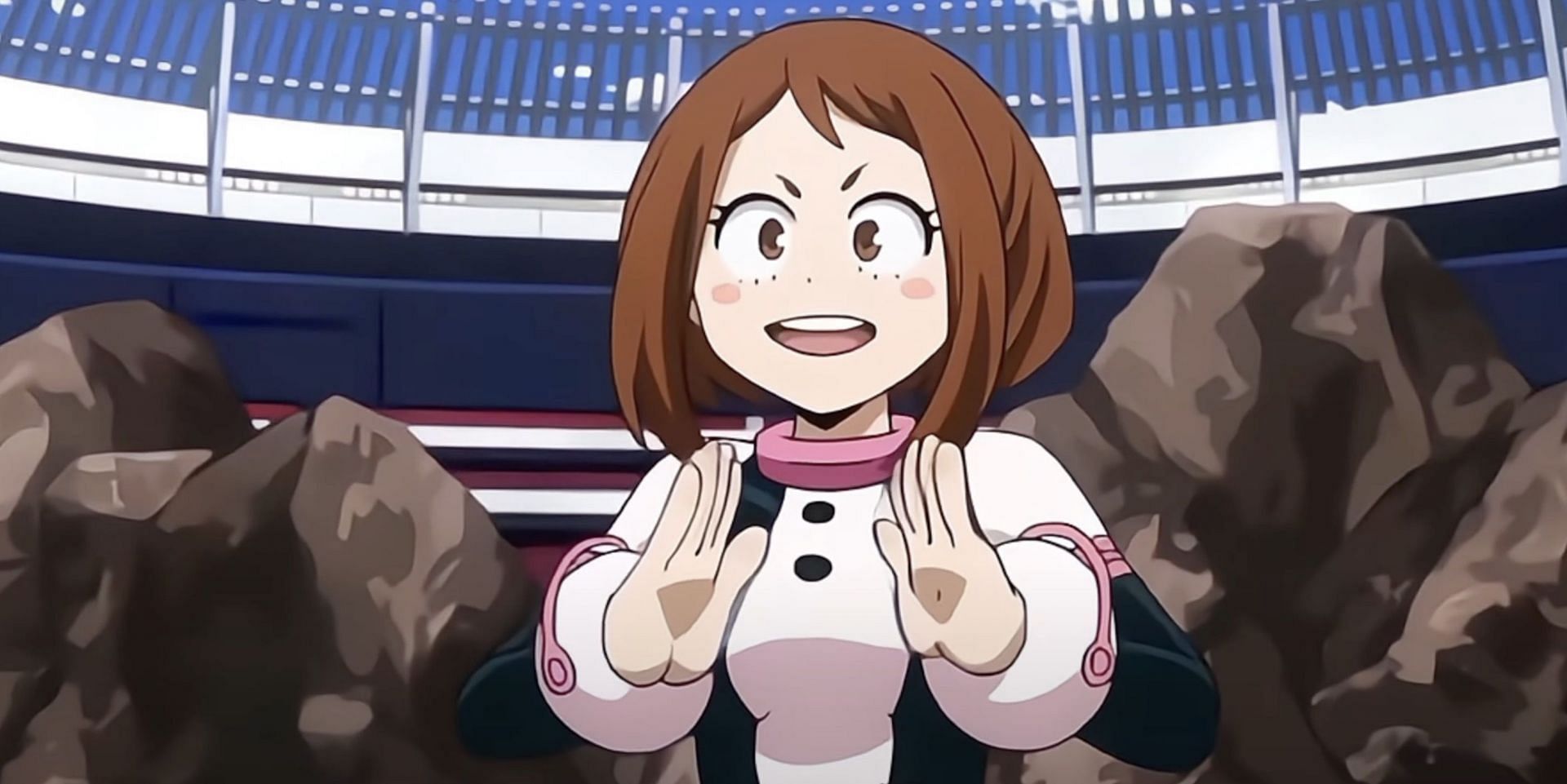 The character design of Ochaco Uraraka changes substantially during My Hero Academia, ending up with a more polished and functional appearance towards the end. At first, her costume is pretty and somewhat basic, which goes along well with her happy and hopeful nature.