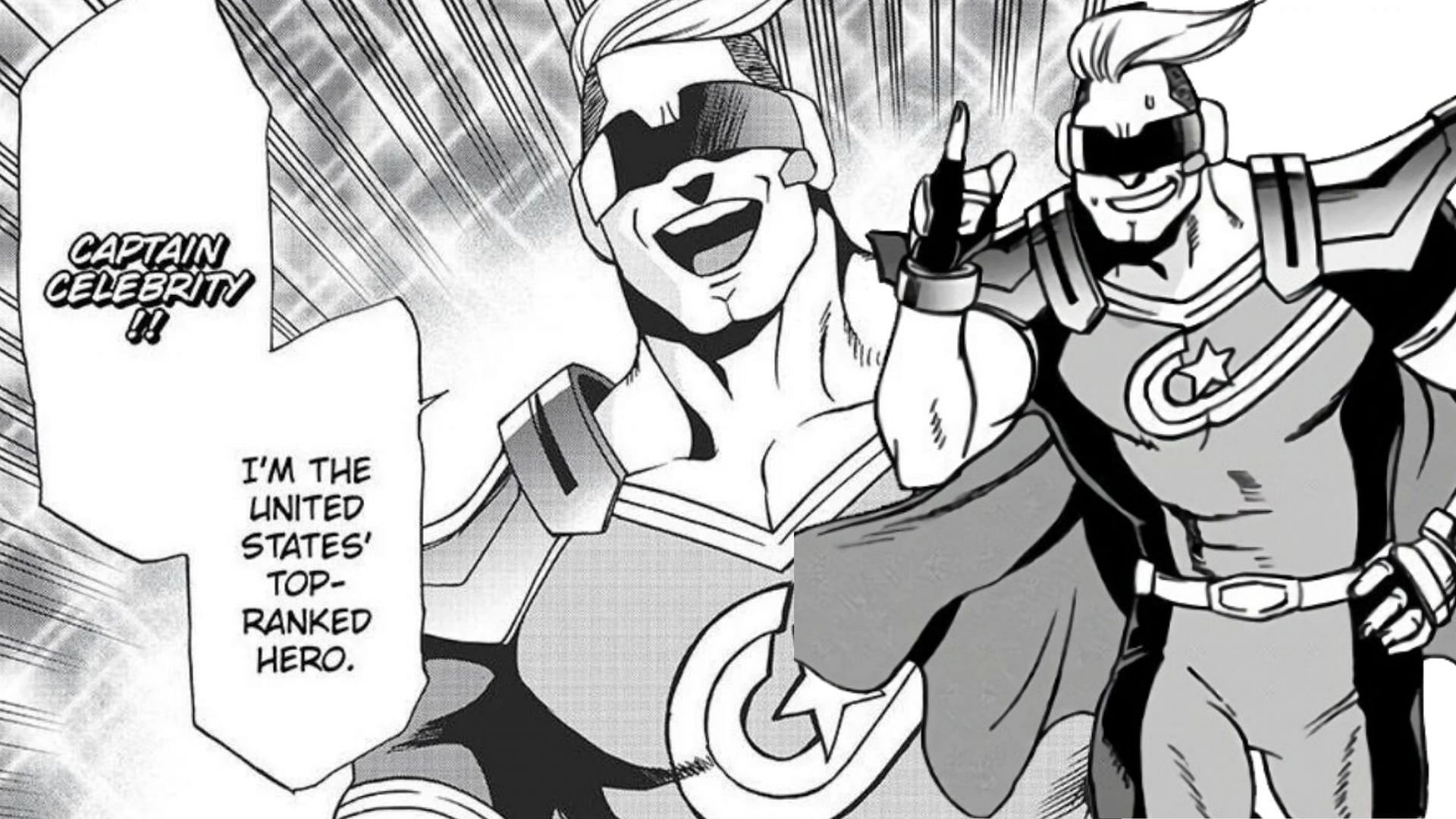 Christopher Skyline is an American Pro Hero in the My Hero Academia: Vigilantes series. Known as the Playboy Hero: Captain Celebrity, he is a powerful figure who shares similarities with All Might and Star and Stripe, acting as a Superman-esque hero. Arrogant and self-assured, he thrives on attention and craves fame.