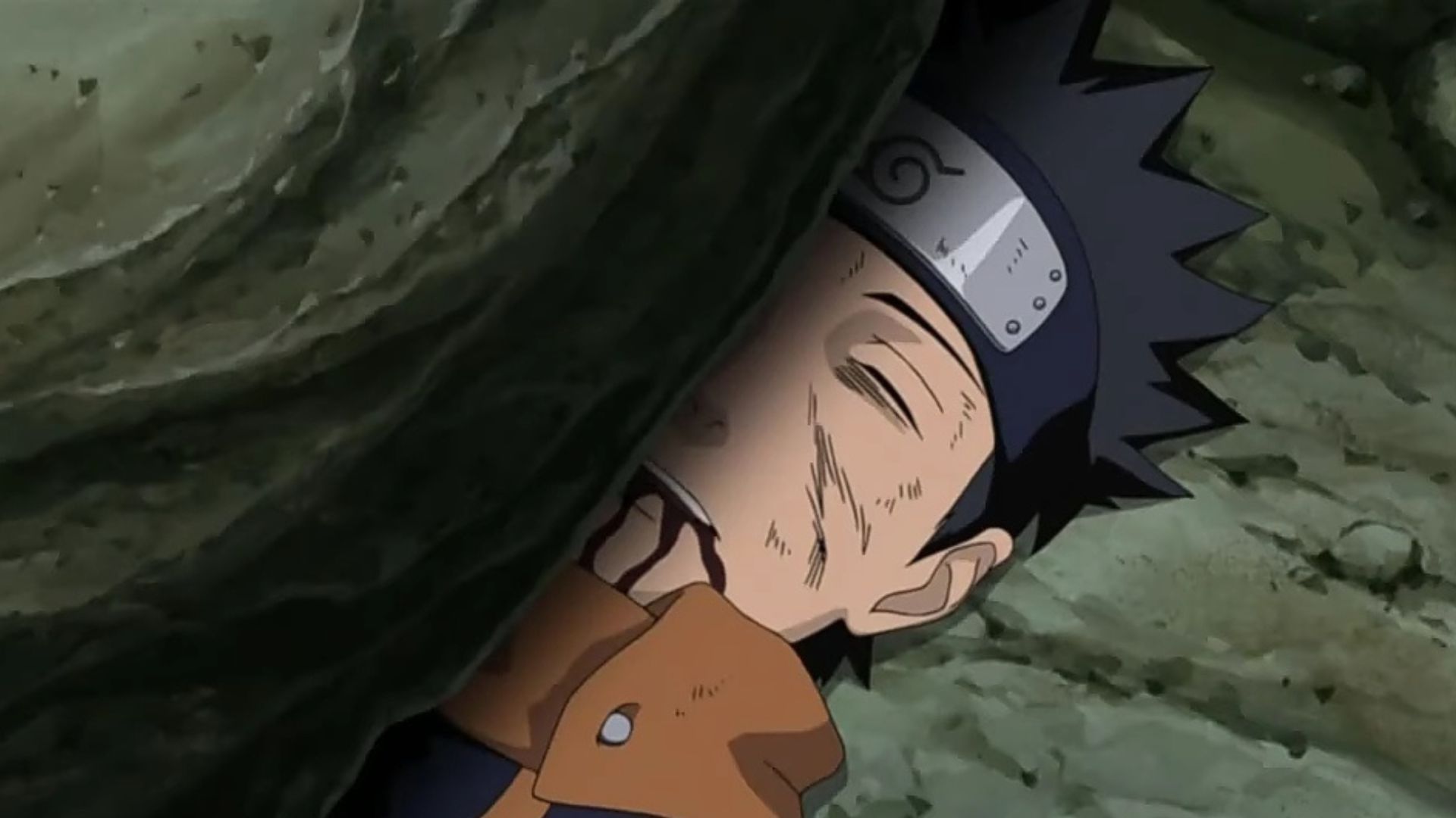 When a young Kakashi, Obito, and Rin were on a mission, an enemy made a cave collapse on them. Obito saw Kakashi about to be buried beneath the falling rocks and pushed him out of the way, getting stuck in his place instead.