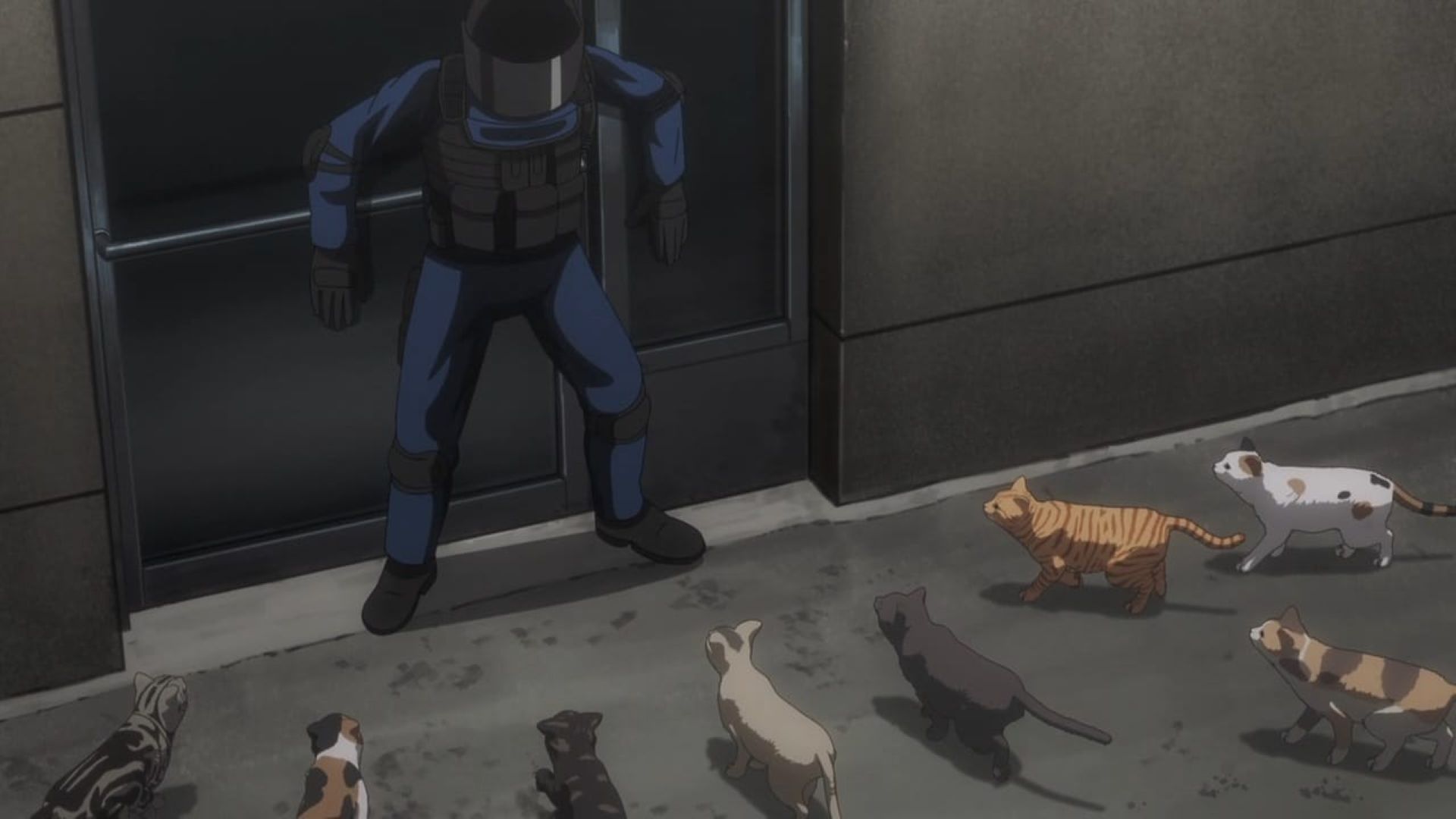 Kaoru broke down in tears as she looked at her brother one last time. Meanwhile, Gaku joined the cats from his cafe, though his transformation isn't shown. Elsewhere, the police urged the public to follow the evacuation guidelines. Understandably, the people couldn't comprehend the danger they were in.