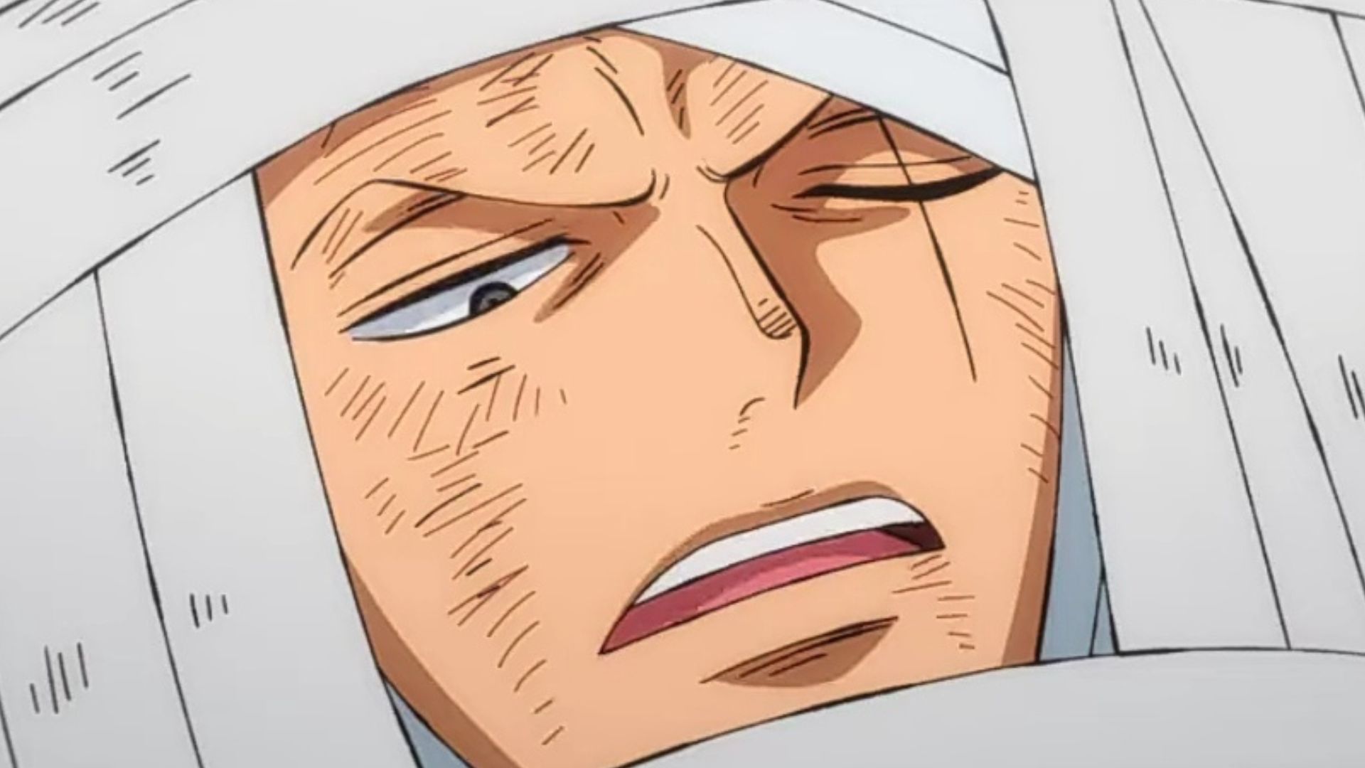 Even in One Piece episode 1039, Zoro has multiple broken bones and is bandaged up. Even speaking is too stressful for him right now, and it's a wonder that he is still alive. Nonetheless, Zoro accepts the medicine because he does not see the point of not fighting when the Straw Hats need him the most.