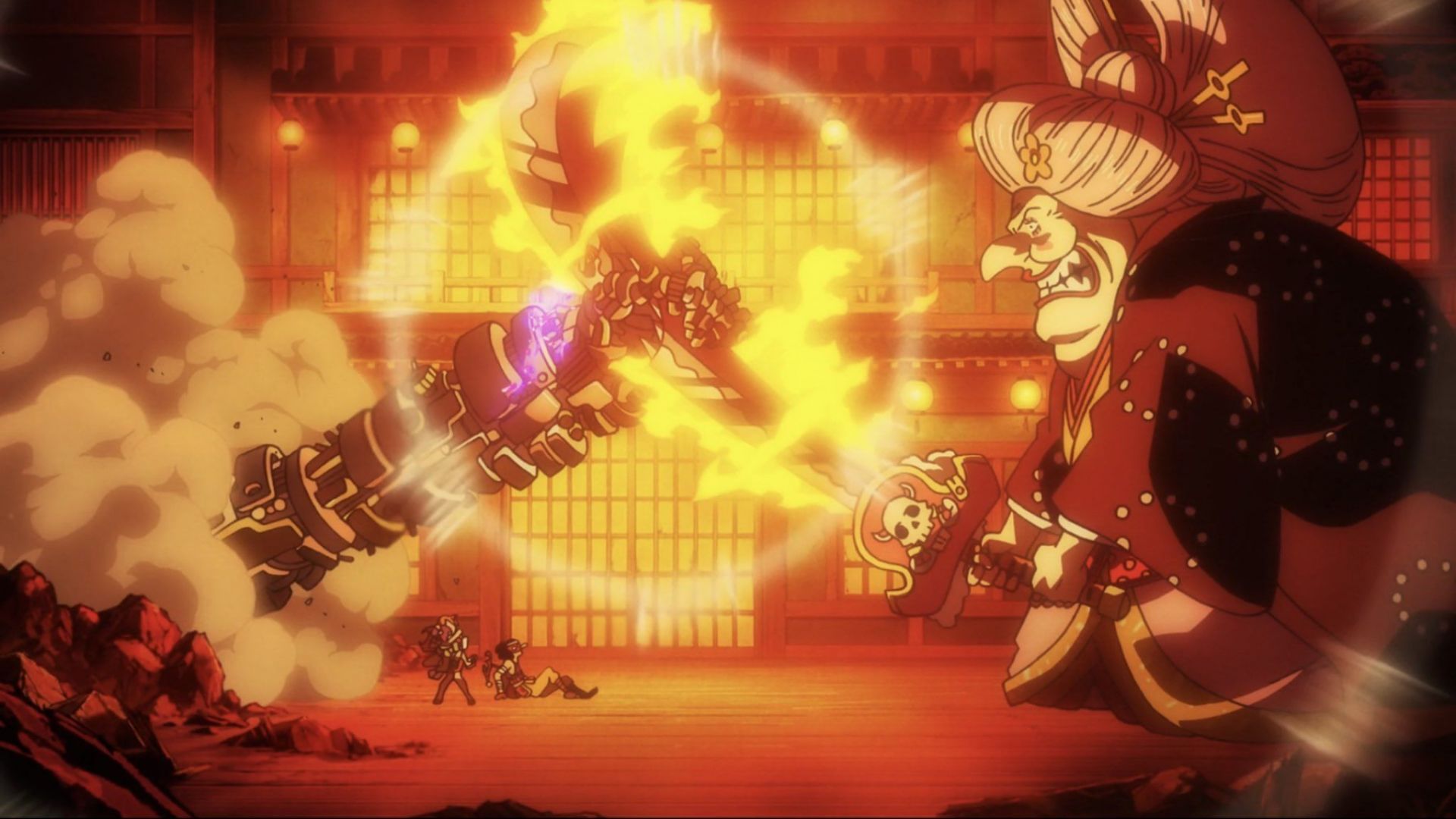 Seeing that her partner was in trouble, Big Mom used her thunder to knock down her opponents once again. The pink-haired woman was shocked to see Luffy still standing. The young man revealed that his rubber body made him immune to any electrical attacks. Kaido tried to use fire, but it also failed to affect the pirate. When asked the reason, Luffy replied that he survived thanks to his guts.