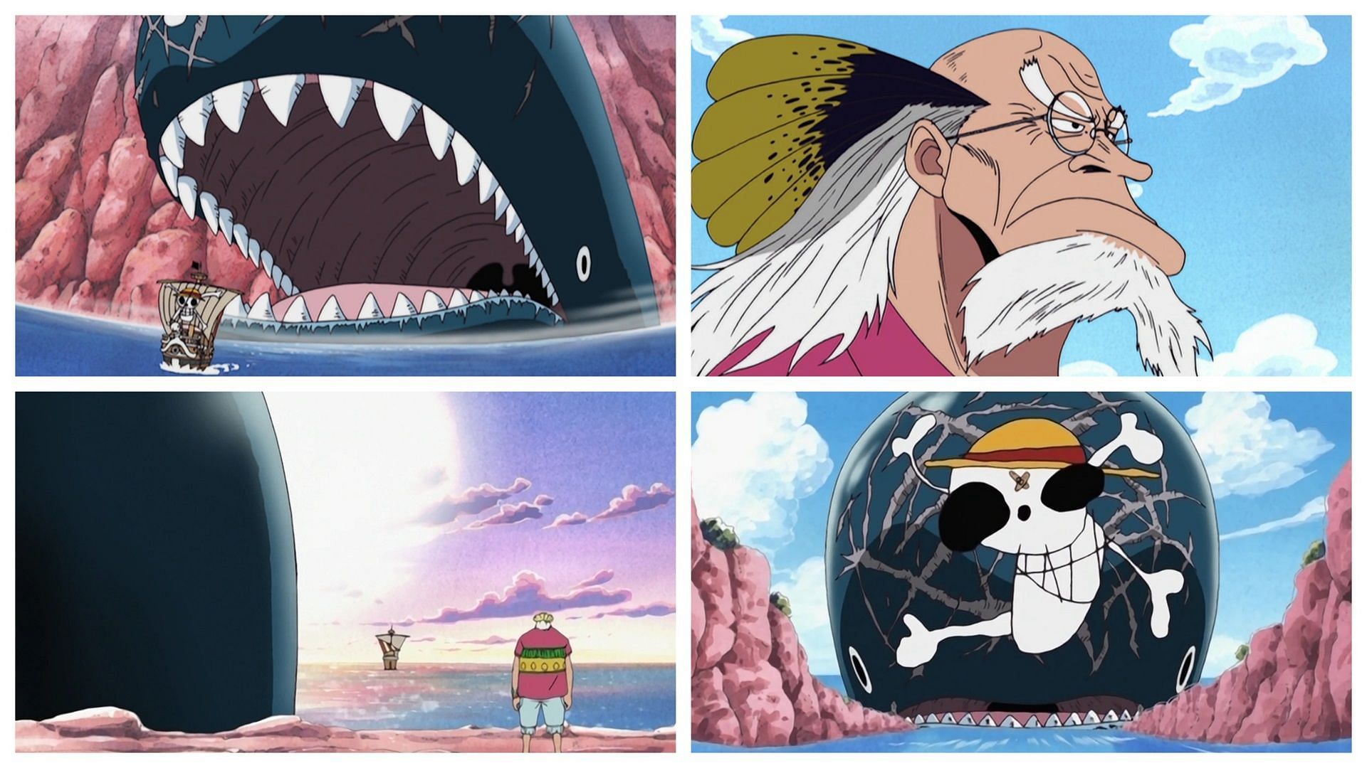 There, they meet Crocus, the keeper of the local lighthouse. A former member of the Roger Pirates, Crocus lives on Reverse Mountain with Laboon, a large whale left in his care by the late Rumbar Pirates. Luffy bonds with Laboon and agrees to meet the whale again after circumnavigating the entire Grand Line.