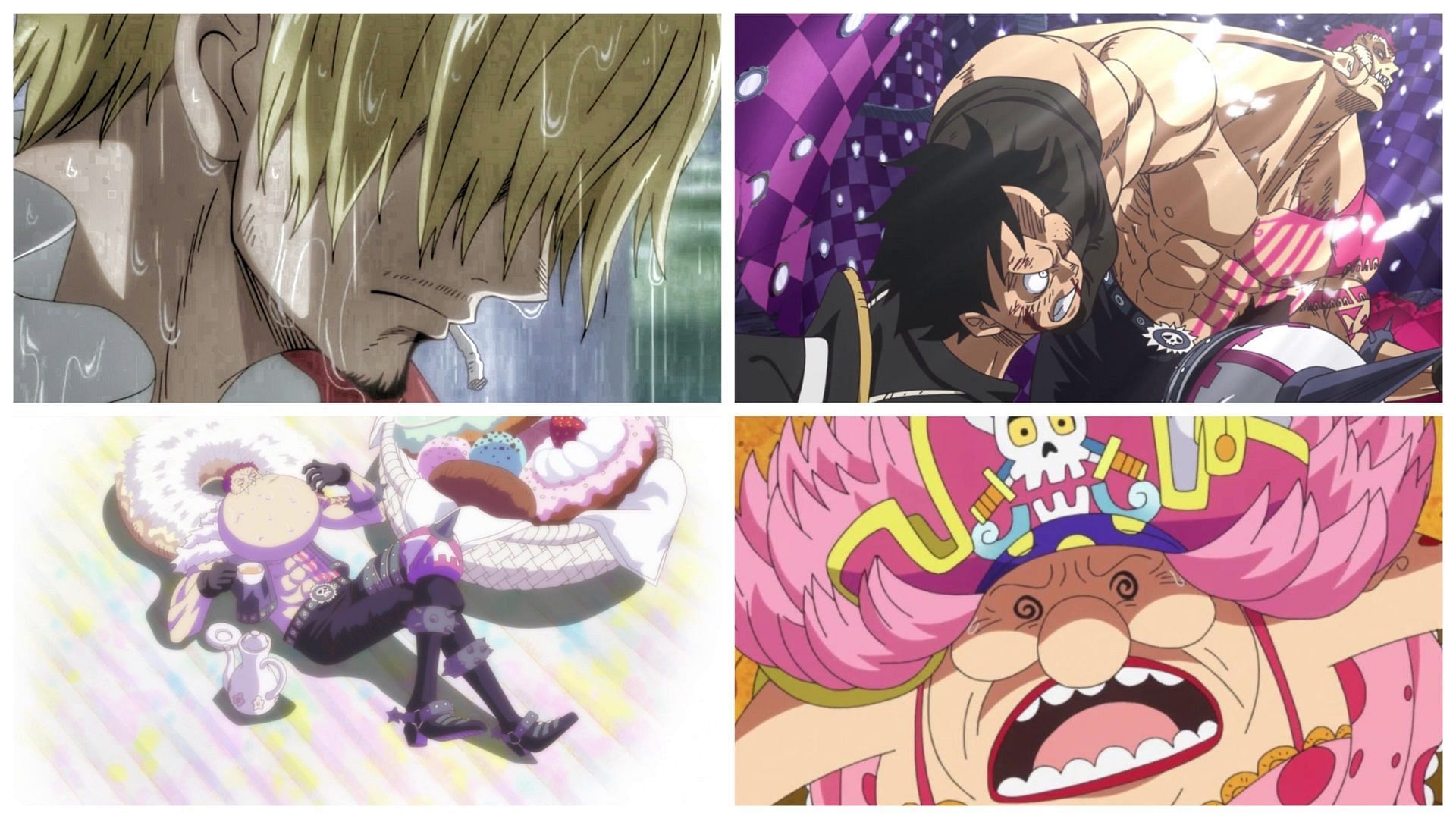 Katakuri combines his Devil Fruit abilities with his masterful Observation Haki to dodge all of Luffy's attacks, outclassing him. However, the fight ends in a mutual knockout when Luffy pushes himself beyond his limits and awakens the same power as Katakuri. The arc covers almost 100 episodes in the anime, beginning with episode 783 and ending with episode 877.