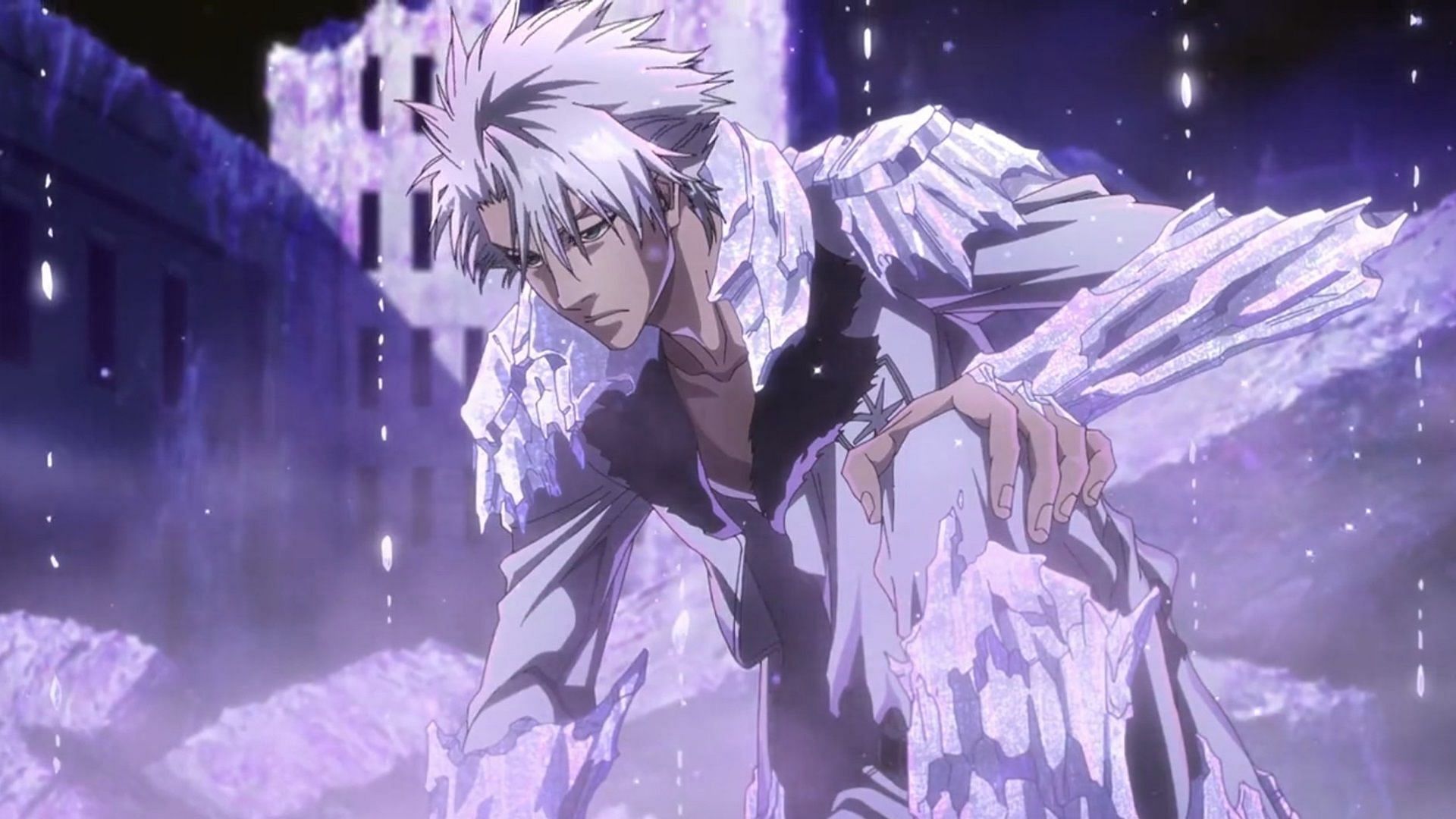After the difficult moments against Bazz-B and Cang Du, the 10th Division Captain Toshiro Hitsugaya managed to surpass his limits by unleashing the true potential of Daiguren Hyorinmaru, the Bankai of his ice-based Zanpakuto. Toshiro temporarily ages himself into an adult to use the Bankai to its fullest.