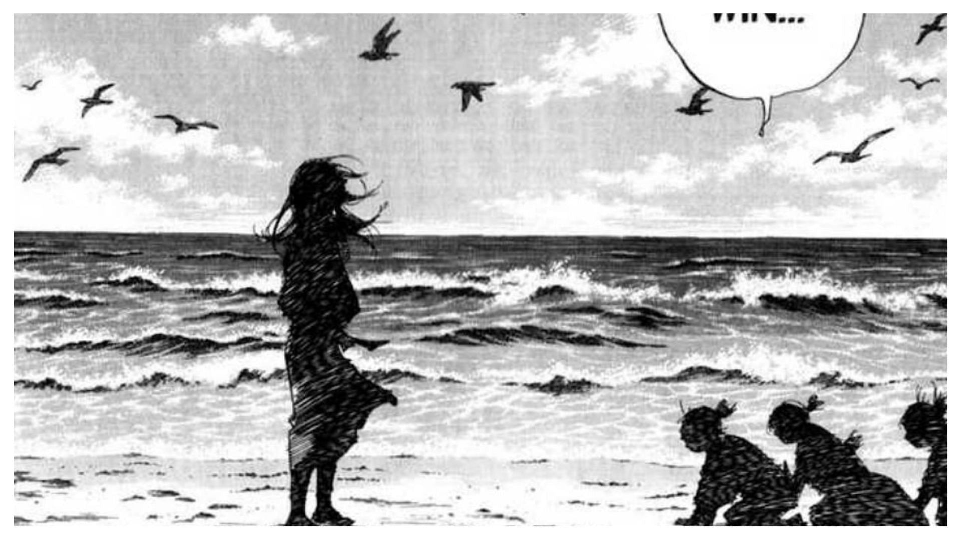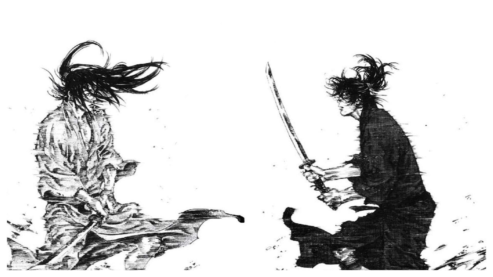 Vagabond’s main character, Musashi, gains the clarity that Sasaki possesses later in the manga. This clarity comes after his battle with the Yoshioka clan, where he gets injured and loses most of the function in one of his legs. In that moment, he realizes that his philosophy might be wrong, and with the direction he is moving, he might die.