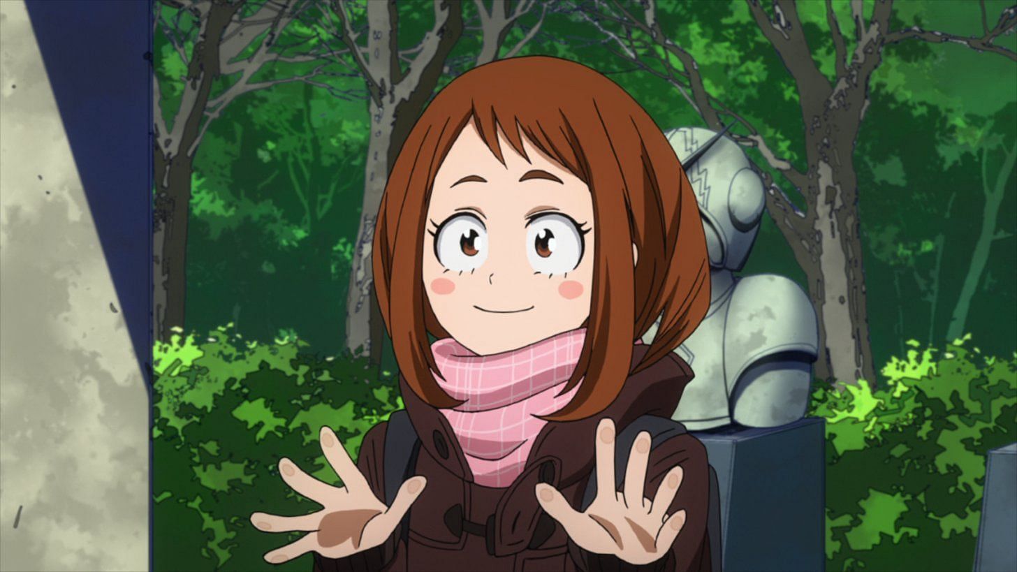 Ochaco is an optimistic, cheerful, and open-minded girl who gets easily excited over little things. She is a warm and empathetic individual who thinks about everything positively. She is friendly to those she meets and will try to help or defend anyone who is kind to her or who needs assistance. Ochaco is also good at reading people, understanding the reasons for Izuku and Katsuki’s rivalry, and being the first to notice when the usually collected Tsuyu was upset. She is on good terms with everyone and is particularly close friends with several members of the class, including Izuku, Tenya, and Tsuyu.
