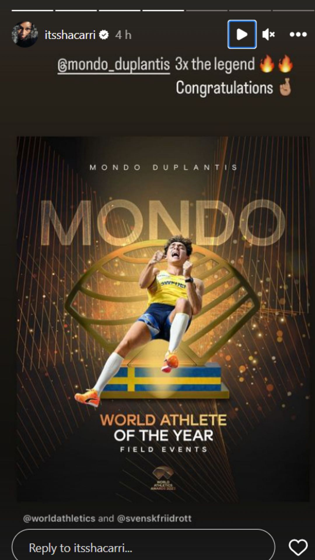 Sha'Carri Richardson, World Champion and one of the fastest women to grace the 100m sprint, recently extended her congratulations to fellow athletes Faith Kipyegon and Mondo Duplantis for winning the World Athlete of the Year award on Monday night.