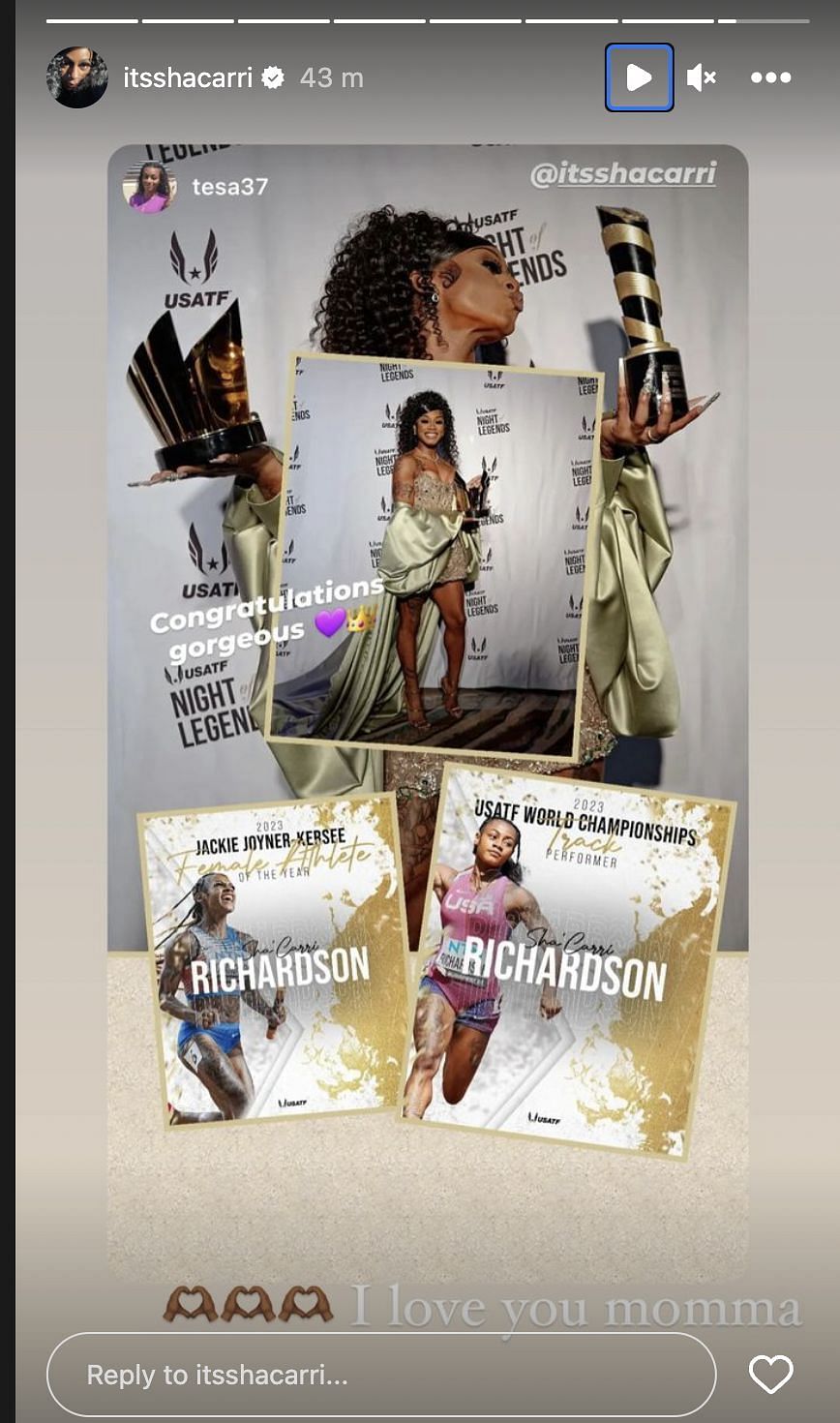 Sha'Carri Richardson recently expressed gratitude toward her aunt after she applauded her for winning the 2023 USATF Athlete of the Year Award.