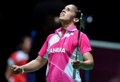 India’s Saina Nehwal reacts after winning against China’s Wang Shixian during their All England Open Badminton Championships women’s singles quarter-final match in Birmingham, central England, on March 8, 2013. Nehwal won 23-21, 19-21, 21-16.