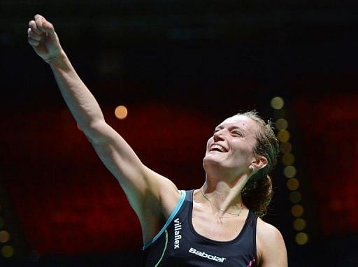 Denmark’s Tine Baun celebrates winning against Indonesia’s Lindaweni Fanetri during their All England Open Badminton Championships women’s singles quarter-final match in Birmingham, central England, on March 8, 2013. Baun won 21-7, 21-13.