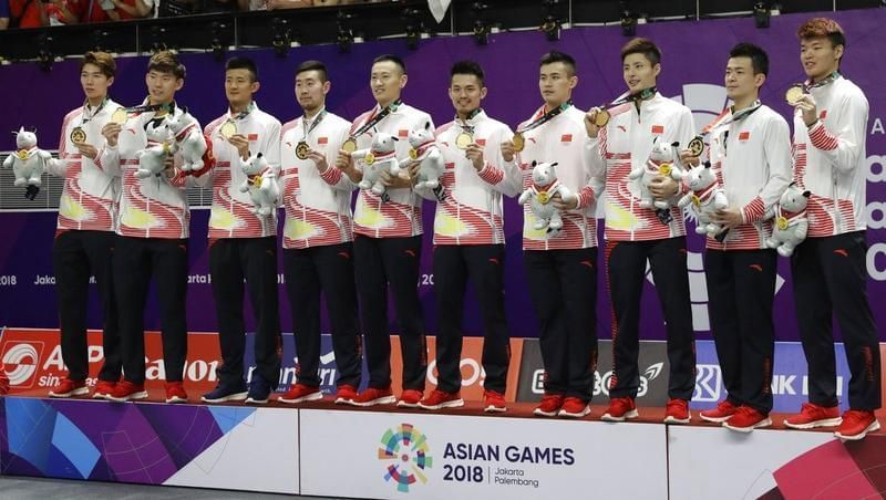Lin Dan of China equaled the record set by Christian Hadinata of Indonesia after winning the 5th Gold medal in Badminton at the 2018 Asian games by winning the Men's Team event.