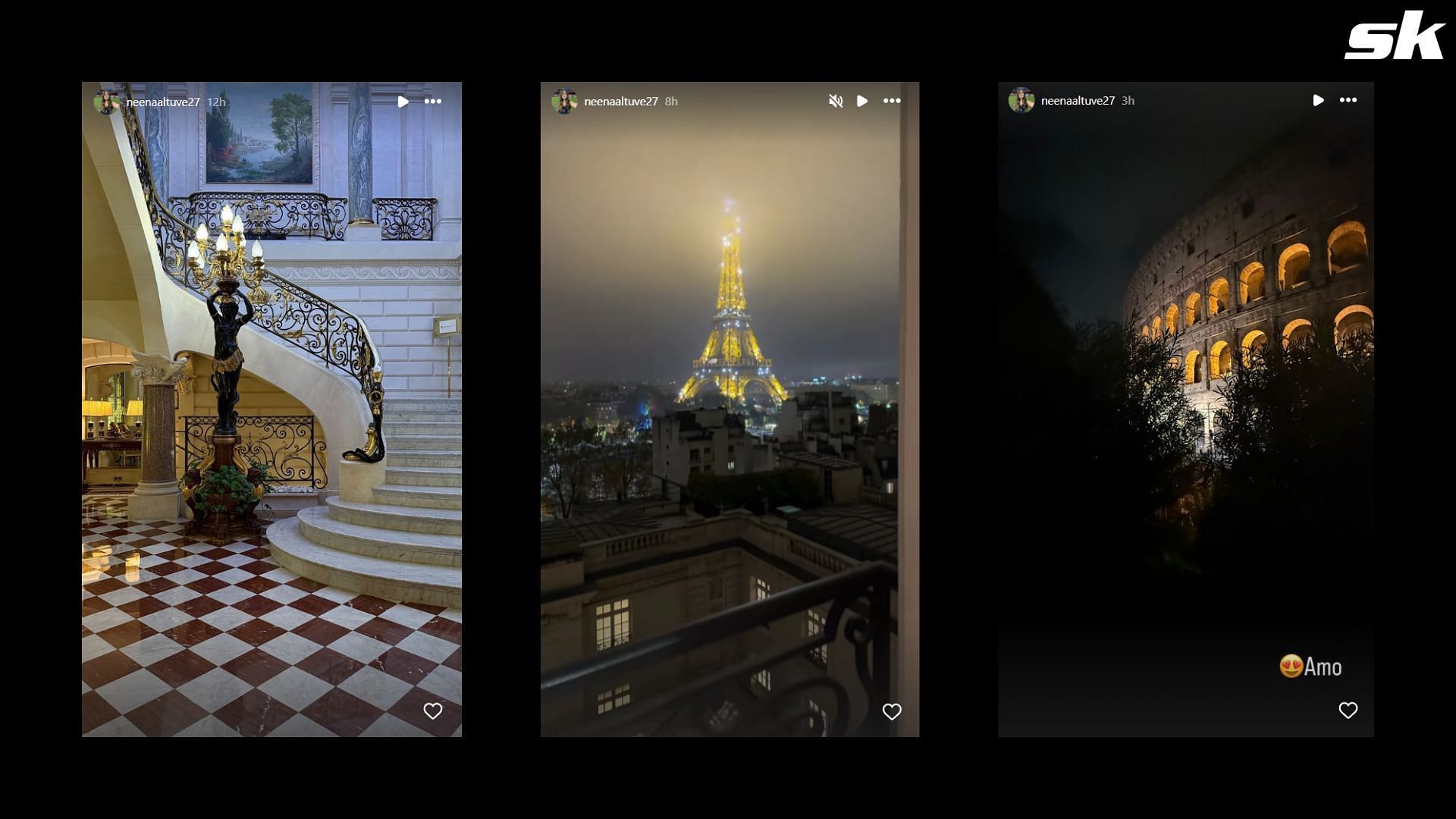 She could be seen rocking a black dress in front of the Eiffel Tower, donning a blissful red while sipping wine at a luxurious restaurant and capturing some snaps of some of the most iconic spots in Paris. She also shared an image of the Roman Coliseum. Take a look at the snapshots here:
