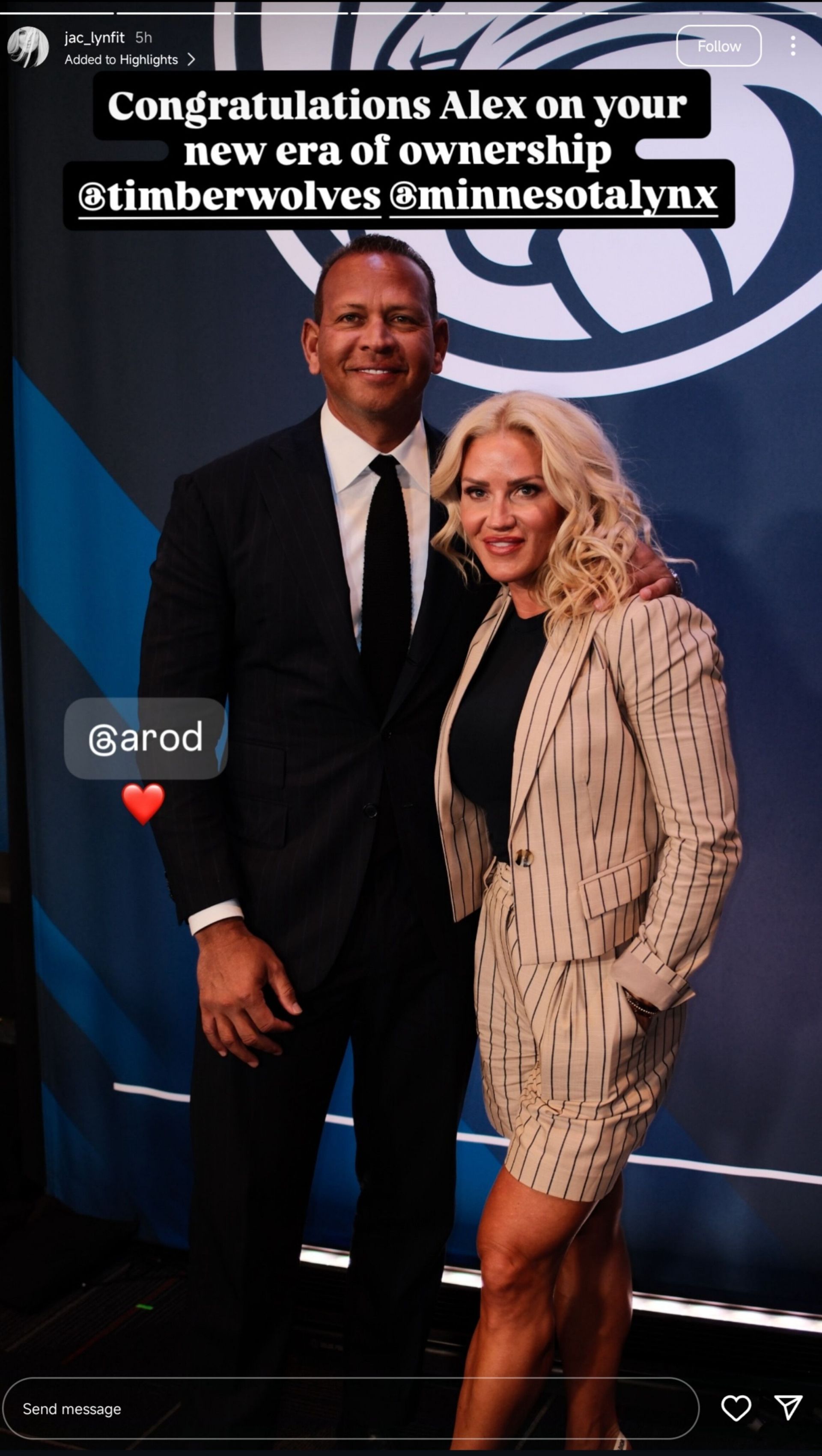 The announcement was made at a press conference in Las Vegas, where the Timberwolves are participating in the NBA Summer League. Alex Rodriguez was accompanied by his girlfriend Jaclyn Cordeiro at the event.