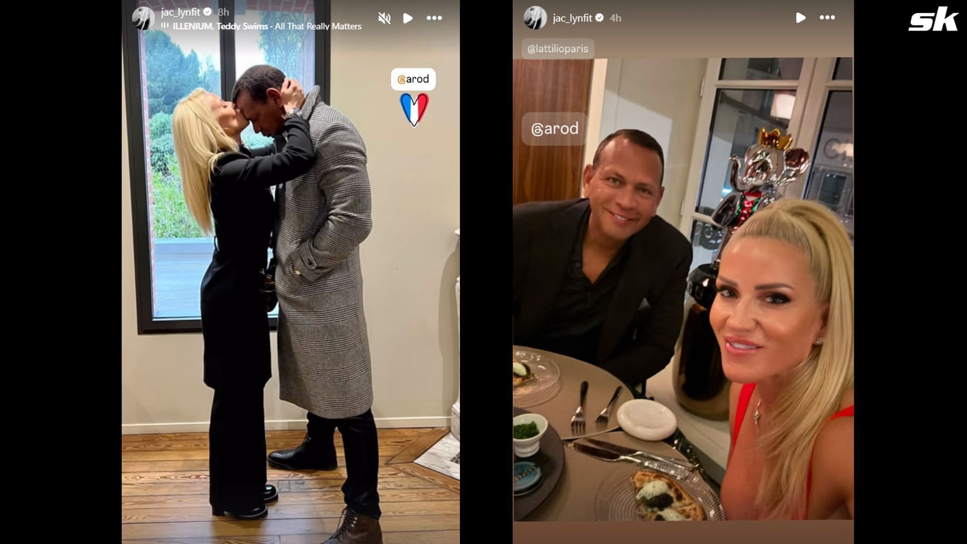 Jaclyn could be seen kissing A-Rod's forehead in one image, while in the other one, the couple were enjoying a romantic dinner date at the L'attilio in Paris.